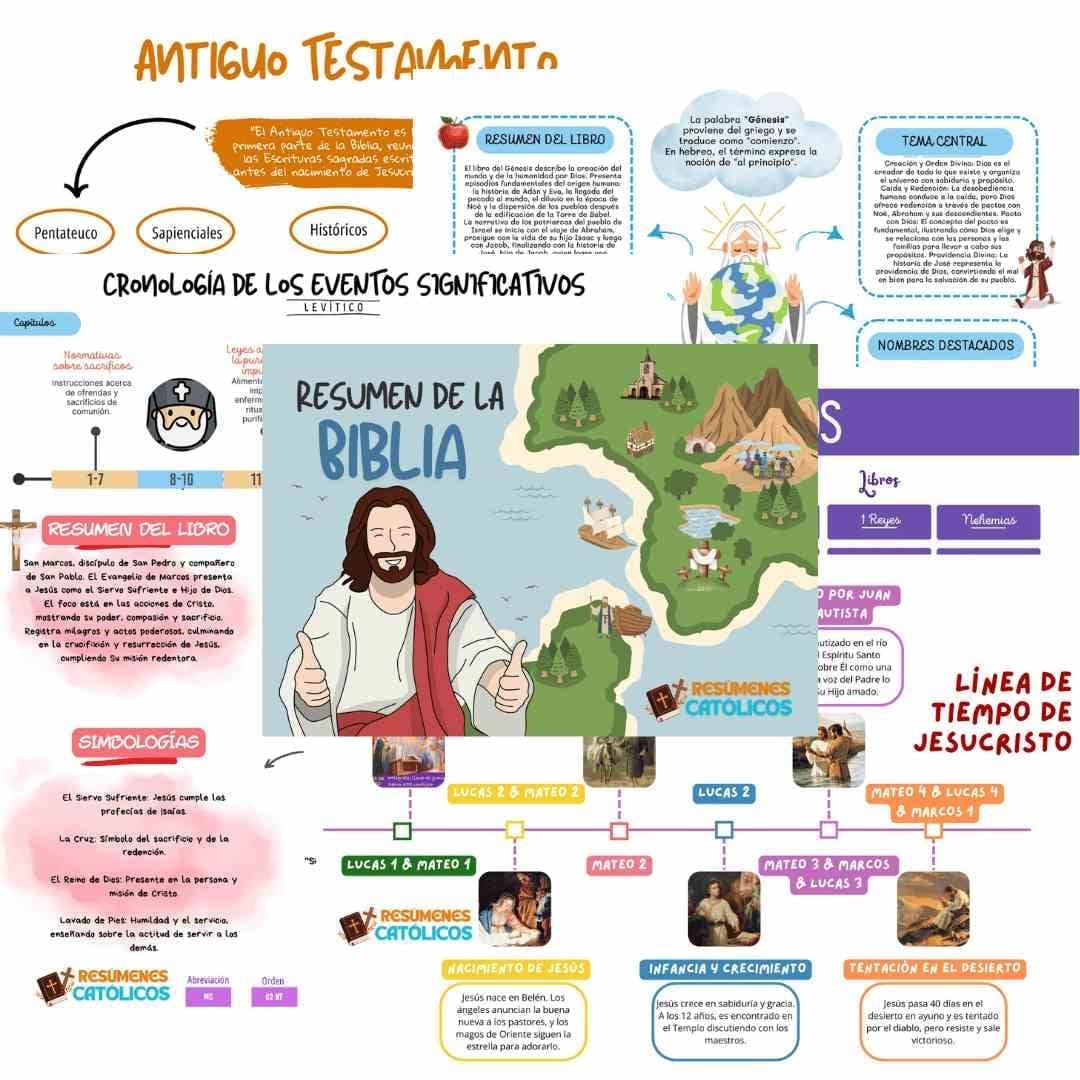 Explora cada uno de los 73 libros de la Biblia de forma clara y estructurada , con resúmenes y elementos esenciales que facilitan la comprensión de la Palabra de Dios.